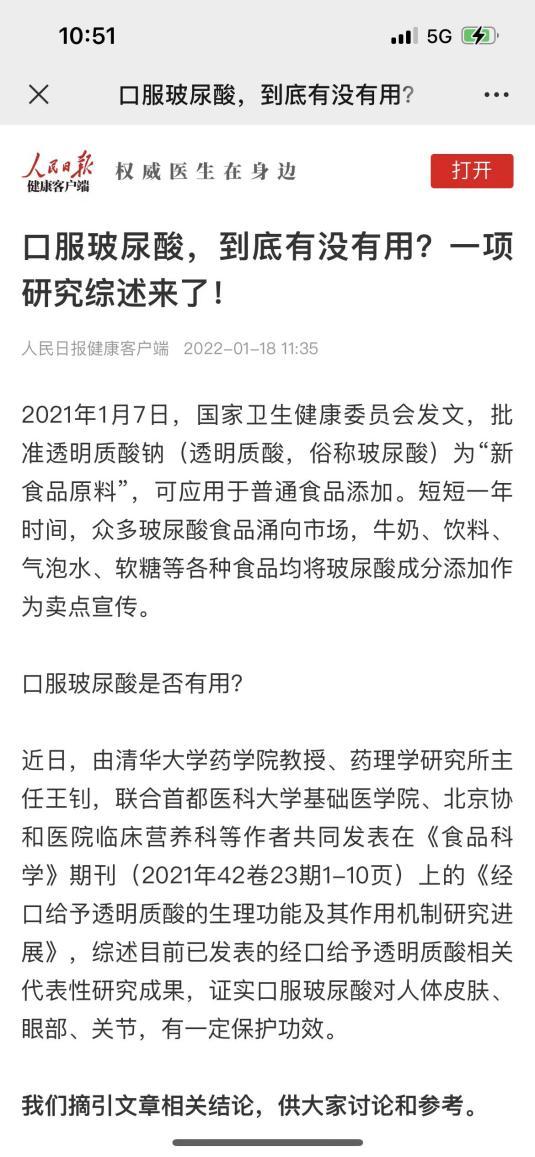 本次清华大学联合研究对于口服玻尿酸安全与功效的认可,提高了大众对于口服玻尿酸的正确认知,让消费者更有信心享受口服玻尿酸带来的好处。