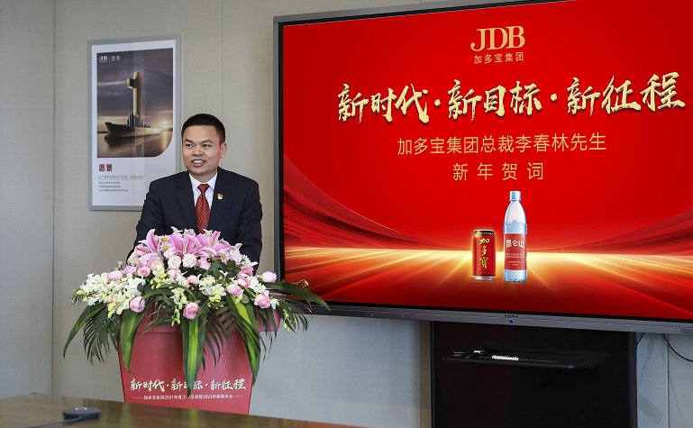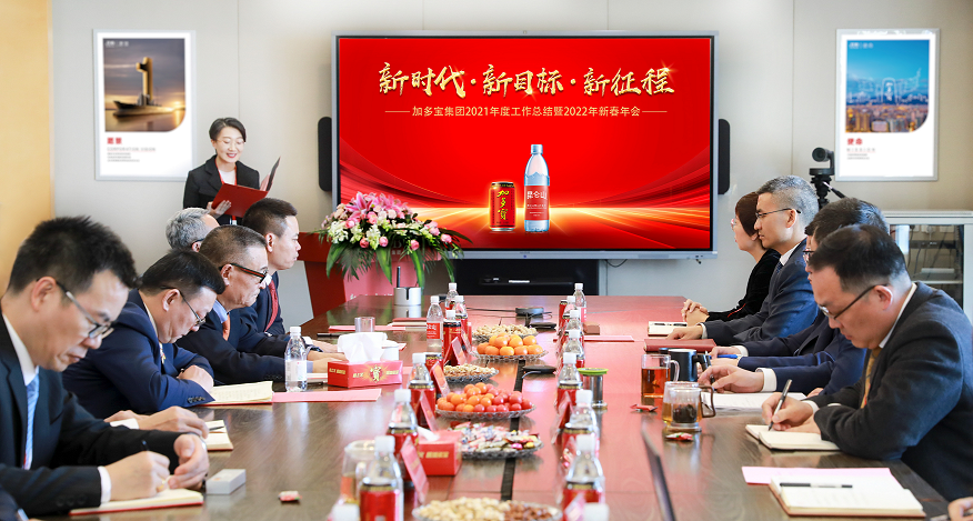 2022年1月26日,新时代•新目标•新征程·一起向未来——加多宝集团2021年度工作回顾暨2022年新春年会在北京总部通过云端召开。加多宝集团董事长王金昌、总裁李春林、副总裁陈文钜主持会议,首席财务官靳纪川、首席运营官徐伟、加多宝事业部轮值总经理项永祥、昆仑山事业部总经理梁俊星等核心管理层现场或云端出席,通过视频会议与全国“加”人们欢聚一堂,辞旧迎新。