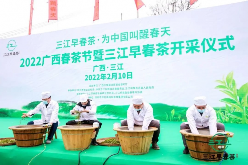 在2022广西春茶节暨三江早春茶开采仪式期间,主办方还安排了三江早春茶品鉴直播等活动,通过线上线下双向结合的方式,助推三江早春茶区域公用品牌建设,提高三江早春茶知名度和消费者认可度,有效提升三江早春茶的美誉度。