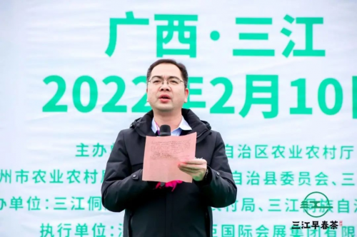 县委副书记、县长陈震宣布2022广西春茶节暨三江早春茶开采仪式正式开始