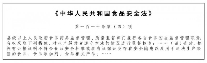 执法人员现场依据《中华人民共和国食品安全法》第一百一十条的规定予以扣押。