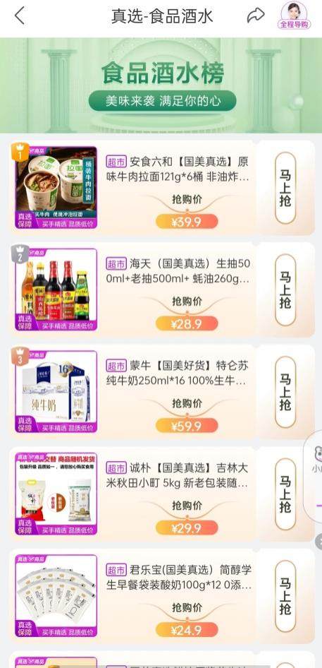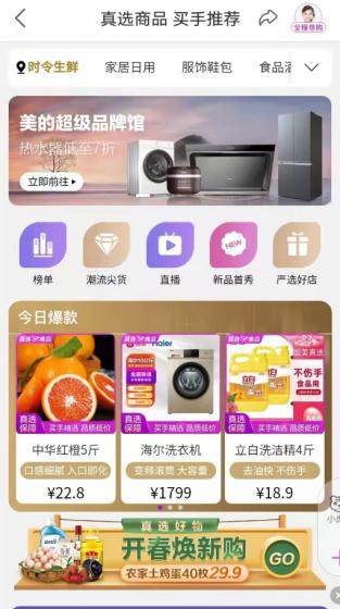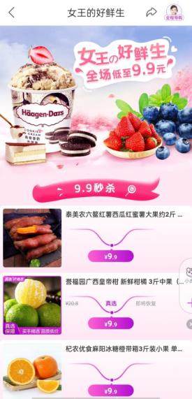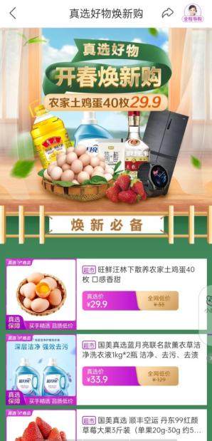 例如誉福园广西皇帝柑新鲜柑橘3斤中果原价20.8元,真选价9.9元;佳沃丹东99红颜草莓普通装500G,原价100元,真选价69.9元;佳沃泰国进口椰青5KG装4个大果,原价120元,真选价59.9元即得,高颜值生鲜好物,一口吃出女王的好心情,还不速度囤起来。