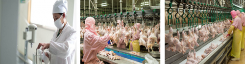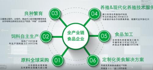 首先,从禽类的食物——谷物饲料入手,自主生产科学配比的天然优质饲料,保证了禽类“吃得好”。其次,在鸡苗、鸭苗选择上,鸡苗为优选白羽鸡、鸭苗则为新希望六和自主培育“中新”肉鸭(中国自主知识产权)。在平度、昌邑、嘉祥、菏泽、聊城等地建立了70多个养鸡场、40多个养鸭场。整个养殖过程严格按照标准执行,确保安全无药残的禽肉原料供应。严格执行宰前取样,宰后检验,通过CNAS认证的新希望六和集团检验中心双重检测,为公司的食品质量安全保驾护航。