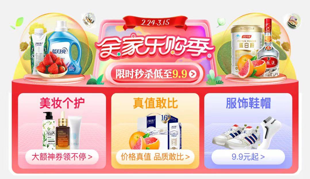 不仅如此,活动期间,在真快乐APP全家乐购季主会场还有满500立减100全家乐购畅享券,每天10点开抢,数量有限,先到先得。新用户进入APP还可以在活动页面领取新人专属券包,多重礼券,好物超值选购!