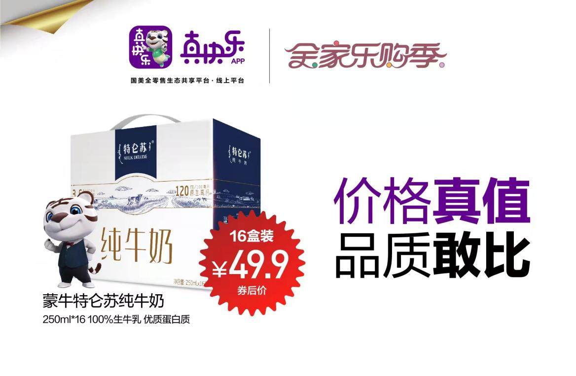 “人生无常,大肠包小肠”,当遇到烦心事的时候,不妨试吃新美食,没准儿你会发现,有些事情其实也没那么糟。既解馋又解郁,当然少不了纯纯的特仑苏牛奶啦!真快乐APP的这款蒙牛特仑苏纯牛奶,优质奶源源自黄金牧场,百分百生牛乳、优质蛋白给你所需营养!活动超值真低价,如今,全家乐购季活动期间,这款特仑苏纯牛奶16盒装一整箱只要49.9!