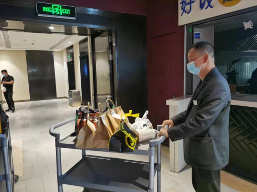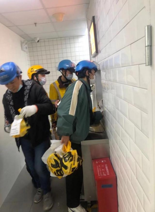餐饮商户也都严格执行疫情防控标准,每日测温,扫码,核酸全部阴性。送餐团队保持48小时核酸检测,集中取餐确保商户和骑手“零接触”。