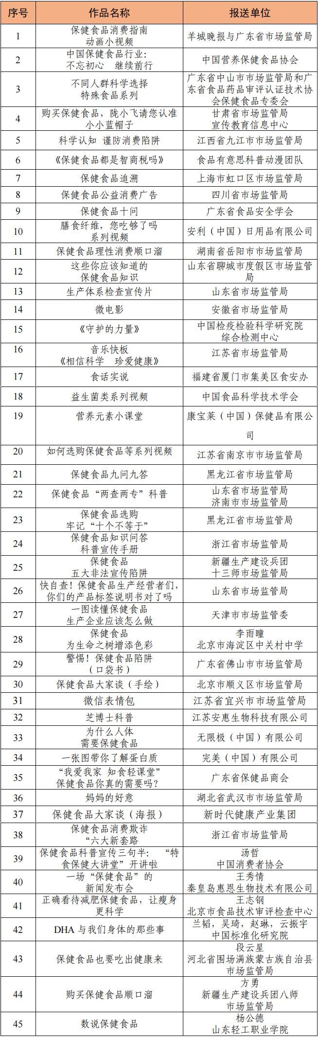 “保健食品大家谈”科普宣传作品征集活动获选作品名单