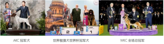 冠能宠粮不仅受到普通萌宠主的青睐,世界级赛事之一——WKC西敏寺犬展的冠军狗狗,和他们的主人也是冠能宠粮的忠实粉丝。