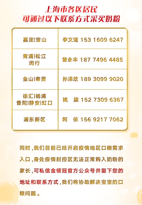 除此之外,金领冠还在政府公众号“上海发布”发布送货上门公告,逆行送“粮”,解决宝宝家庭的燃眉之急。