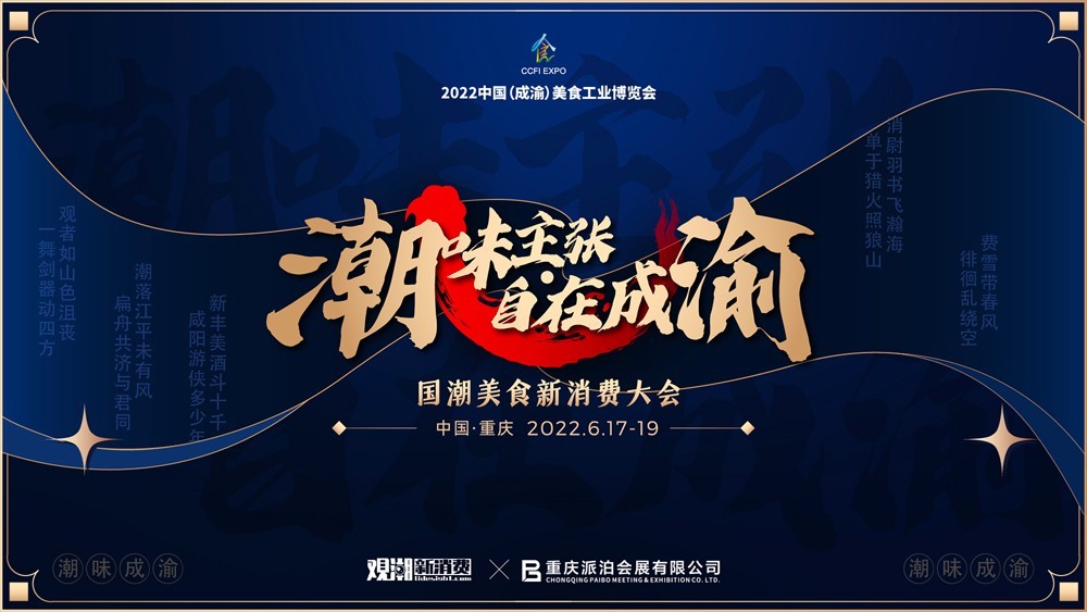 作为2022中国(成渝)美食工业博览会的核心版块,由观潮新消费、重庆派泊会展有限公司联合主办,以“潮味主张,自在成渝”为主题的2022国潮美食新消费大会也将于2022年6月17-19日同期亮相。