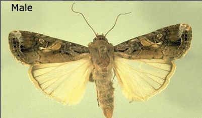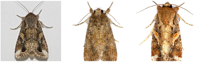 草地贪夜蛾成虫(左为雌蛾,中、右为雄蛾)
