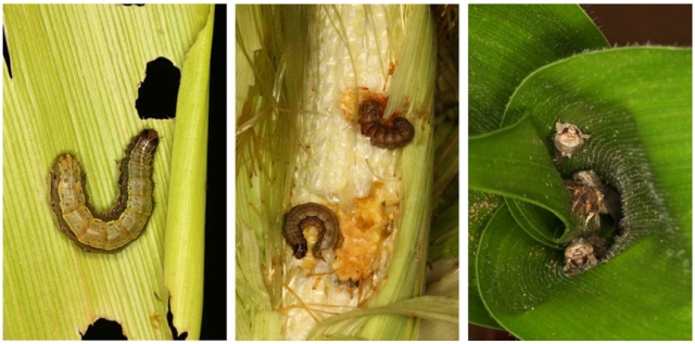 草地贪夜蛾玉米为害状 图源平乐县植保站