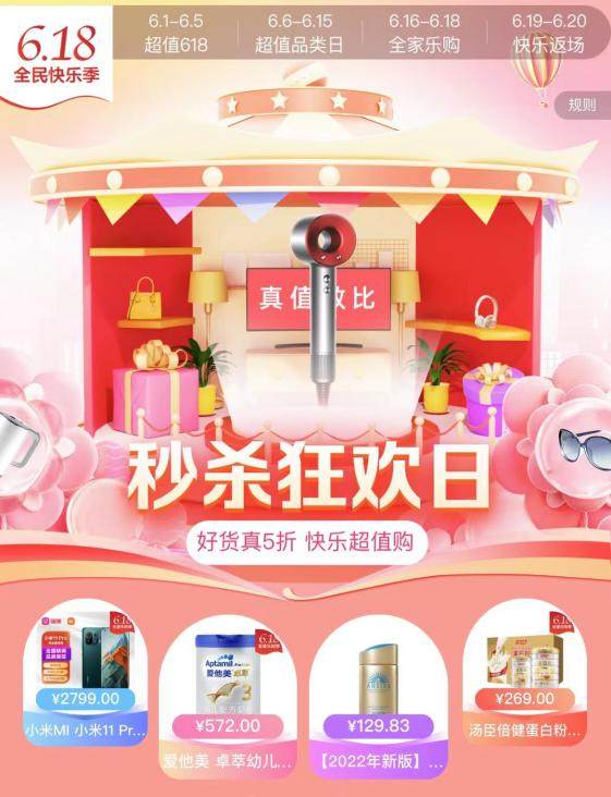 今年端午节正好撞档6.18大促,当传统节日遇上全民消费,购物热情自然会被推向新的高峰。5月25日至6月20日,国美开启了以“真值6.18·乐购一夏”为主题的大促活动。作为大促活动的主战场,真快乐APP也在6月1日掀起狂欢秒杀热潮。6.1元限时抢、好货真5折、热门商品每满200减35、叠加满299减30全民快乐券、热销爆款买一赠一、部分商品跨店满199减100等多个专场活动轮番登场,以全网超低价和高品质,为消费者送上不套路、真快乐、真低价的全家乐购体验。