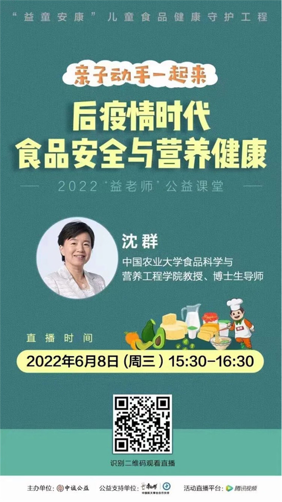 在此次公益活动中,中国农业大学食品科学与营养工程学院教授、博士生导师沈群担任专家讲师,与康师傅一起,制作了一堂名为《亲子动手一起来:后疫情时代的食品安全与健康》的网课。该网课内容涵盖安全的食品储备、营养健康、基本烹饪技能等方面,让学生更好地了解生活中的食品安全知识。