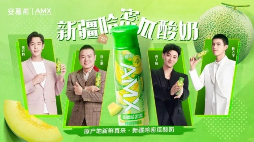 借助同样来自新疆的品牌代言人迪丽热巴热度,携手张若昀、岳云鹏、黄子韬与陈飞宇组成明星代言团,持续赋予安慕希AMX新疆哈密瓜酸奶以更多元化的明星热度,从而达成了新品声量曝光的持续拉长。