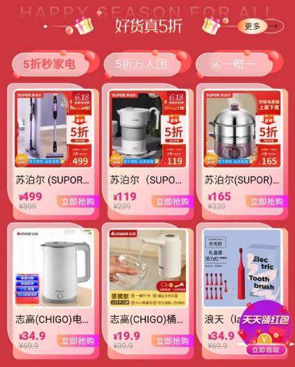 攻略2:5折秒家电、5折万人团、买一赠一 真5折无套路