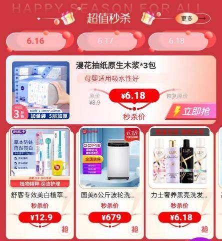 攻略3:秒杀好物6.18元抢 连续3天剁出超值感