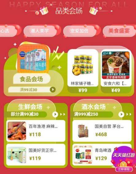除此之外,还有大牌品类专场特惠券来袭,“食品会场满99减30”、“生鲜会场部分满99减30”、“酒水会场满999减250”、“生活服务领券最高立减100”、“美妆个护满99减30”、“健康滋补满129减50”……真低价基础上再满减,羊毛薅的就是如此简单!