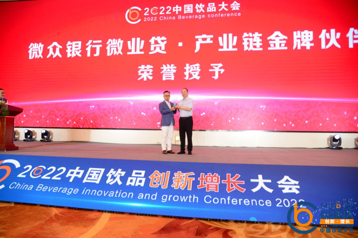6月14日-15日,“2022中国饮品创新增长大会”(以下简称“中国饮品大会”)圆满落幕。作为国内首家互联网银行,微众银行坚持践行数字普惠金融之路,以数字科技服务小微企业成长,会上,微众银行微业贷凭借在小微普惠金融服务领域的突出表现以及强劲的创新服务能力,获得由中国饮品大会颁发的“2022中国饮品创新增长大会·产业链金牌伙伴”称号,微众银行企业金融总经理助理曹辰上台领奖,凸显出微业贷以数字化供应链金融为食品行业小微企业提供高质效金融服务备受认可。同时,微众银行微业贷亦携手华糖云商在大会上共同举办《企业+故事·食品行业特辑》视频栏目开机仪式,助力小微企业发声,为小微企业经营提供更多力量,共促食品行业谋求创变。