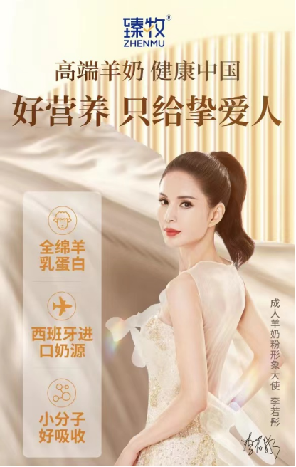 品牌坚持“让14亿人更健康”的使命,深入了解用户需求,以身作则为社会做出贡献,身体力行推动品牌进一步发展,积累品牌荣誉,为品牌发展立下良好口碑。同时臻牧成功签约小龙女李若彤为成人羊奶粉形象大使,借助李若彤健康、阳光、积极的形象,进一步强化了品牌理念。