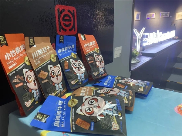 ▲嗑小熊还为展览现场带来了小炒素肉、小香豆干、麻辣素牛排等美味零食