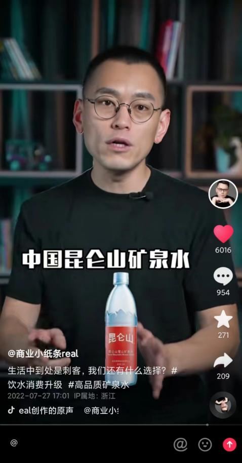 健康时报的饮水金字塔,从侧面印证了任泽平的观点,也引发了人们对于健康饮水趋势的讨论。众多网络达人通过短视频的方式参与探讨健康饮水趋势,科普矿泉水与普通水的区别。抖音知名财经博主@商业小纸条real对此表达了自己的观点:大家开始重视健康,更愿意喝矿泉水而不是纯净水,因为许多微量元素难以从食物中摄取,主要从水中得到。多方讨论使得矿泉水一时间成为了互联网上的热门词汇。