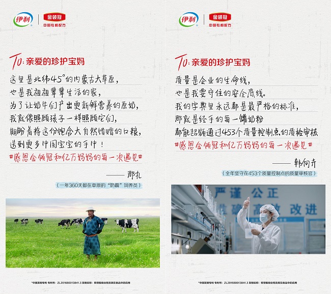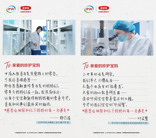 伊利20年母乳采集路上的口粮守护者郝万清记录下感谢的心情:非常感谢那些愿意献出珍贵母乳的妈妈们,让每个宝宝都能得到妈妈般的营养守护;而一年2100小时都在实验室的母乳研究专家叶文慧,在感谢信里说道:“大家的初心就是研发出适合中国宝宝营养需求的口粮,守护好我们宝宝的‘中国胃’”。
