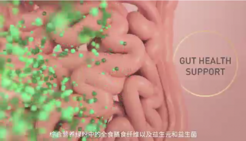 最后,营养成分到达肠道,其全食膳食纤维以及益生元和益生菌如同肠道的功能强化器,提供更多有益菌保持肠道动力,帮助肠道完成清洁全过程。