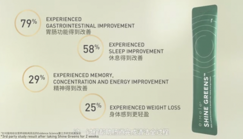 归根结底,能得到Gemma Newman博士的重磅推荐,还是得益于综合营养绿粉的出色效用。根据Evidence Sciences第三方研究结果显示,针对服用综合营养绿粉两周后的消费者,79% 胃肠功能得到改善,58% 休息得到改善,29% 精神得到改善,25% 身体感到更轻盈。