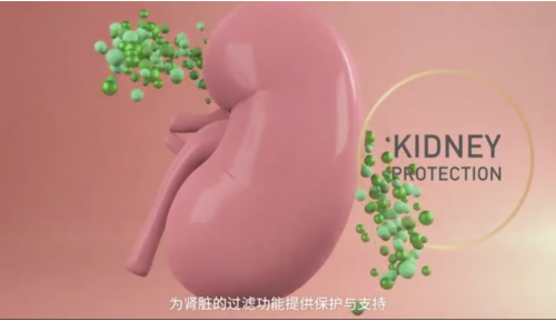 接下来,综合营养绿粉营养成分到达肾脏,为肾脏的过滤功能提供保护与支持,清体护肾;