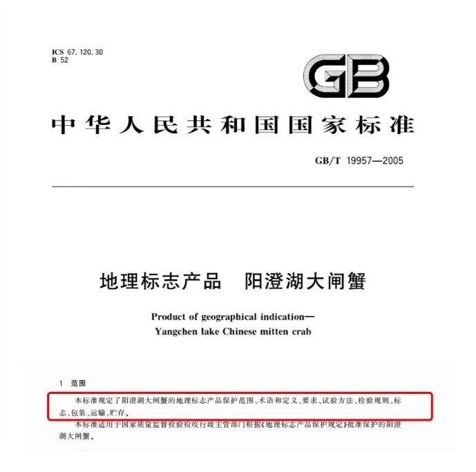 且根据《阳澄湖大闸蟹地理标志产品保护要求》(原质检总局2005年第71号):