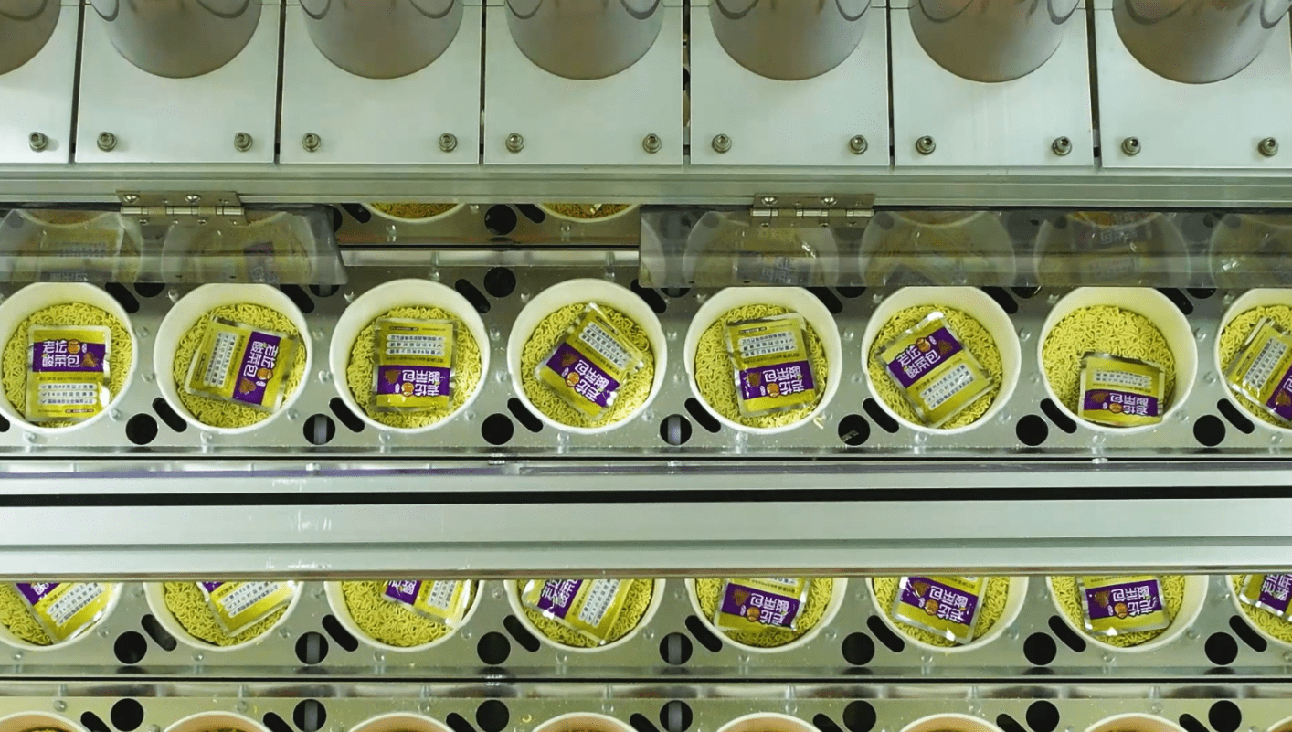 康师傅方便面杭州工厂生产线。(直播视频截图)