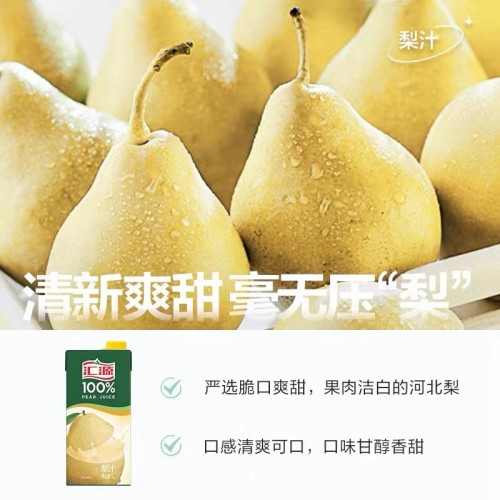 汇源100%梨汁延续了汇源果汁一直以来的高品质,臻选优质鲜梨为原料,采用UHT瞬时灭菌、无菌冷灌装等世界先进的生产工艺进行加工,最大程度保留了水果原果的营养与纯正口感。同时,汇源100%果汁以7层复合无菌包材为包装,能够有效阻挡阳光,避免果汁氧化,让果汁可以更好、更长时间保鲜。因此,消费者可在住所、办公室等处常备一些汇源100%梨汁,无论是日常饮用,还是搭配佐餐,都是不错的选择。