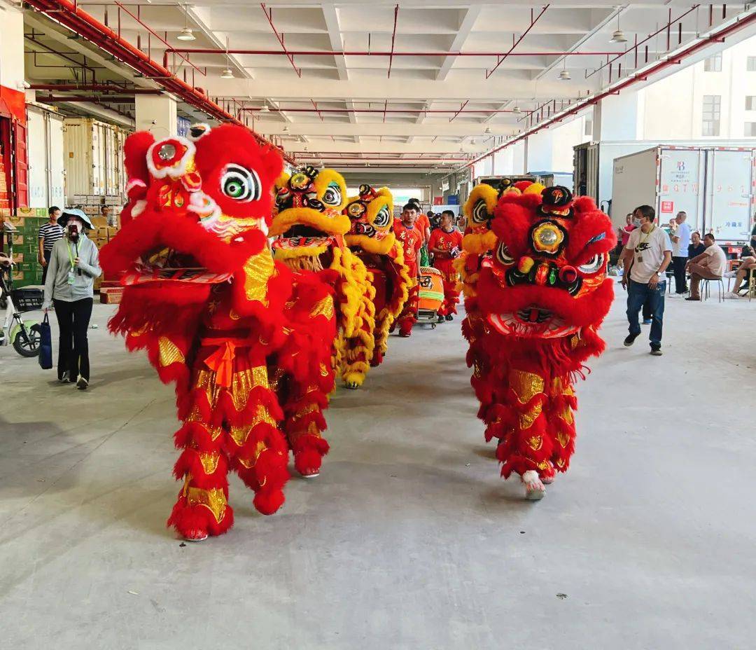 随着铿锵有力的锣鼓阵阵响起,舞狮队伍环绕着水果区进行了精彩绝伦的表演,引得路过的商户们都暂时放下了手中的生意,纷纷拍照留恋。寓意着粤东江南国际农产品交易中心从此生意兴隆、财源广进、一红到底!