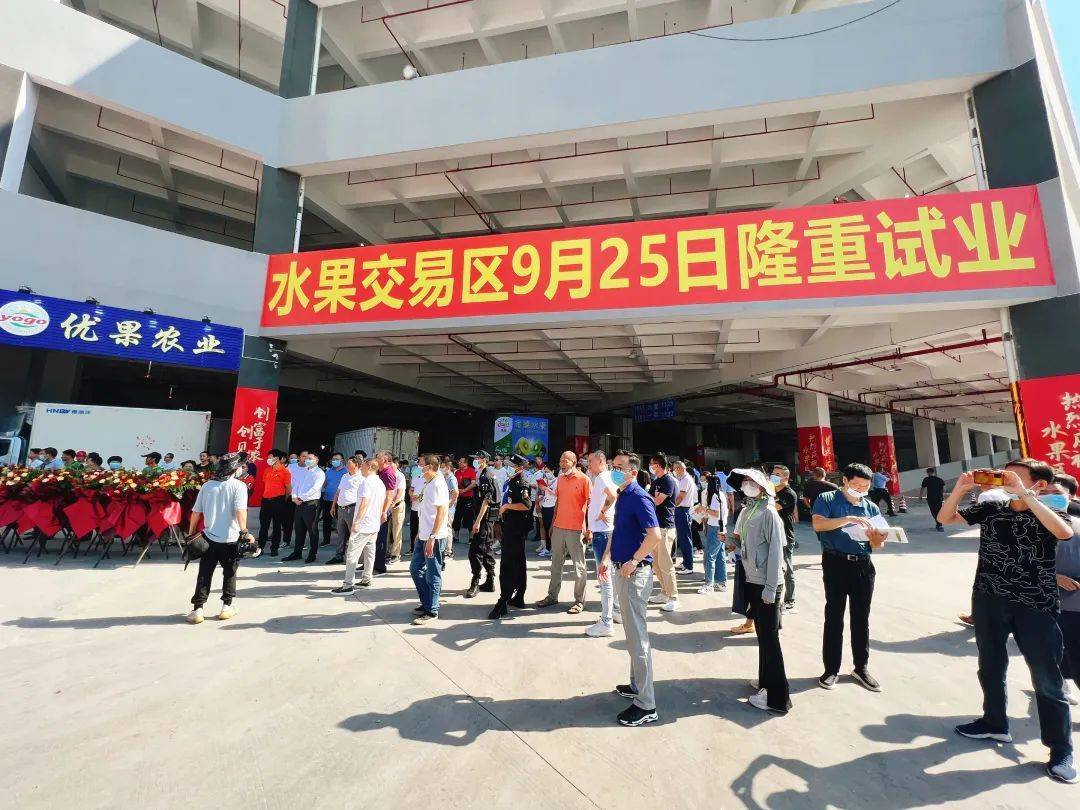 9月25日上午9点,万众期待的粤东江南国际农产品交易中心水果区试业活动终于拉开帷幕。活动现场,以粤东江南市场董事长黄镇裕、广州江楠集团董事长叶灿江为代表的众多行业大佬们一同到场、出席了此次活动。