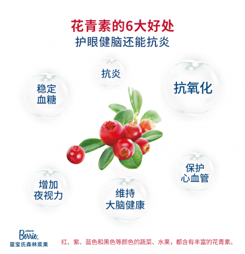 芬兰科学家借助现代生物科技手段,清晰地证实野生蓝莓的护眼功效——发挥作用的就是生物活性物质花青素。花青素进入身体后,促进眼部供血循环,预防视网膜、白内障、青光眼等眼疾。此外,花青素对人类生命健康、预防心血管疾病、癌症、糖尿病等慢病具有重大意义。