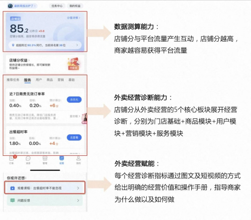 “‘饿管家’从规划、研发,到全量覆盖所有商家一共经历了9个月时间的精心准备,”“饿管家”项目负责人刘辉介绍,“这其实是一套完整系统,包含了诊断、学习、优化、反馈和奖励五个模块。除了发现问题,还提供了线上课程学习、整改建议咨询以及效果追踪等全方位服务,帮助商家实现最终的生意增长目标。”