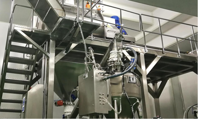 在工厂内部,羊奶原料通过脱包杀菌进入洁净间之后,就会进入严格按照GMP标准设计和建造的生产车间,进行投料和预混,投料站下方设有振动筛,可以有效的避免异物进入到产品中。混合机的下方是正压密相输送系统,奶粉通过氮气的推动,运送到三个粉仓中。粉仓下方设有金检仪,可以检测出奶粉中混入的金属异物,即使奶粉中混入的金属异物很细微,一旦检测到就会打开旁通阀,将带有金属异物的奶粉排出生产线。接下来的是自动计算填充量的充填机,然后是在封罐机里将奶粉罐里的空气抽出来,充入99.99%纯度的氮气,最后封罐。