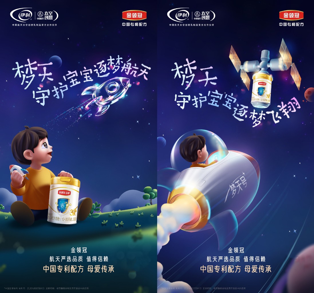 不忘初心赓续传承、无惧攻坚克难、脚踏实地的“航天精神”内核,也同样牵引着像伊利金领冠这样的国货品牌。作为“中国航天太空创想乳制品官方合作伙伴”,伊利旗下婴配粉品牌金领冠通过自主探索打造出更适合中国宝宝的专利配方[1],以“航天严选”产品助力中国宝宝逐梦航天。