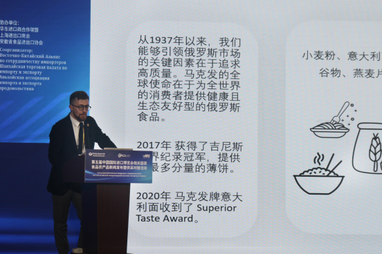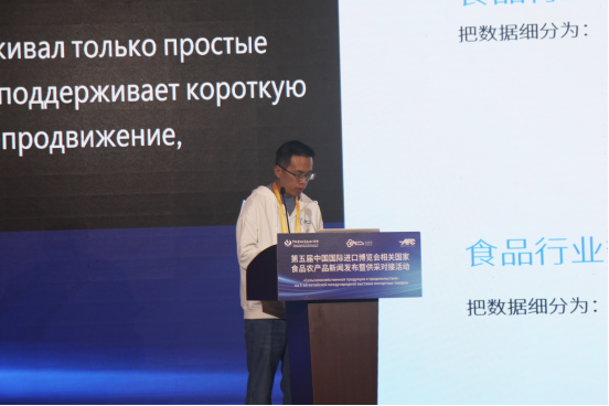 俄罗斯驻华商务代表处上海分处专员多尔戈波洛夫(王靖)俄罗斯做俄罗斯企业产品推介,为线上线下的采购商带来20多家俄罗斯企业及产品,现场采购商都表示活动后将加强联系,通过运食界报名进行“一对一”对接。