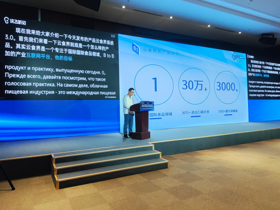 在云食界3.0版全球发布环节,云食界网络科技有限公司运营总监冯乐全为现场嘉宾介绍了云食界最新功能,并做成果演示。云食界是专注于国际食品领域的B2B+的产业互联网平台,目标建立一个服务于食品进出口行业的互联网生态。从1.0发展到3.0,云食界实现了在国家级别大数据更完善,展览展示更多维,交易服务更全面,增值服务更务实的全面发展,整体系统的完成度已超过70%,满足支撑云食界产品现阶段发展及商家在平台内的基本服务保障。