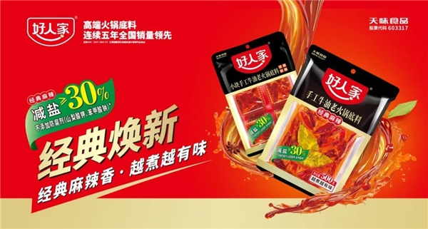 除此之外,天味食品旗下高端火锅底料品牌好人家多个产品系列,包括“好人家手工牛油老火锅底料”“好人家菌汤火锅底料”“好人家浓汤番茄火锅底料”“好人家香肠腊肉调料”“好人家小龙虾调料”“好人家酸菜鱼调料”纷纷入选新华社客户端乡村振兴频道《了不起的国货》栏目,扛起复合调味料圈“国货优质品牌大旗”。