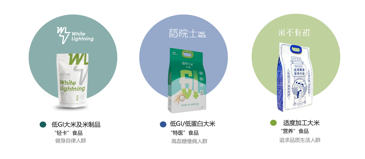 江南米道旗下品牌及产品多元化发展,为不同受众群体提供专业化、定制化的健康饮食及生活方案。“米不有初”初元米匹配对营养更有追求的高品质用户,“白色闪电”低GI大米为健身减重的年轻群体提供优质碳水的新选择、而“稻院士”则解决慢病人群饮食困扰,让慢病人群能安心吃上营养安全的米饭。
