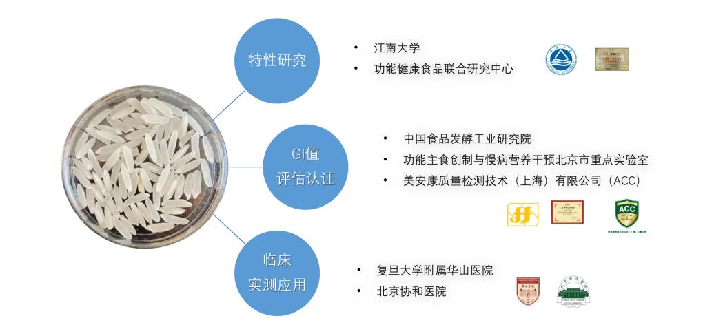 江南米道还联合江苏省农科院及江南大学成立功能健康食品产业创新联合体,整合农业、食品医疗行业顶尖科研力量,重点在功能营养水稻、低GI功能健康食品、健康生活方案等方面开展科研共创。同时携手中国食品发酵工业研究院,合作成立米道低GI饮食生活联合研究中心,围绕低GI健康饮食开发及生活方案制订等方面开展科研,制定低GI膳食标准。