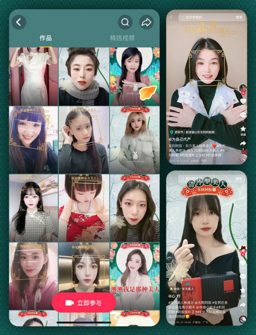 东阿阿胶以一款“东方美人”国风贴纸,发起#东方美人养成计#抖音全民任务挑战赛,释放高达30万的奖金及王牌滋补礼品给广大网友通过互动进行瓜分。活动开始后,吸引了众多百万级博主火速参与,瞬间掀起“东方美人”热潮。