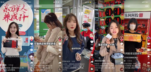 此外,各大城市的探店博主纷纷前往当地的医药门店“探寻滋补宝藏”,体验并分享门店的东阿阿胶产品及服务回流至#东方美人养成计#抖音全民任务挑战赛。视频内容一出,便有网友表示,才知道医药门店可以免费提供东阿阿胶打粉、熬胶、塑封等服务,许多用户被种草前往门店购买、体验。各大城市的医药门店都展示了本次活动的传播物料,来往顾客皆可通过这个线下“通道”扫码进入全民任务挑战赛,实现社交平台与终端双向赋能。