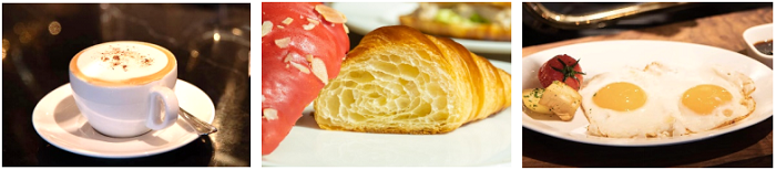 希尔顿集团旗下酒店经典早餐 —— 早餐咖啡,早餐羊角面包,早餐煎蛋