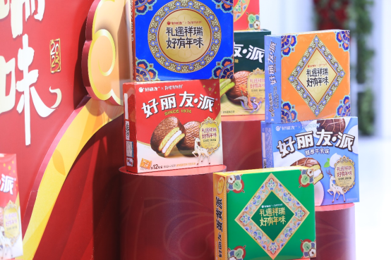 好丽友敦煌博物馆联名礼盒设计风格充满浓郁的国潮风味,金、红、蓝三色搭配的主色调,装饰了以九色鹿、朱雀、金凤为代表的敦煌瑞兽图案,将敦煌文化所代表着的中华传统文化之美展现得淋漓尽致。除国潮礼盒,好丽友旗下经典产品如好丽友派、蛋黄派、呀!土豆以及好友趣等也同步升级包装设计,推出联名款包装。浓浓的国潮味、焕然一新的包装风格让“春节档”的好丽友变得格外“有颜有料有内涵”。