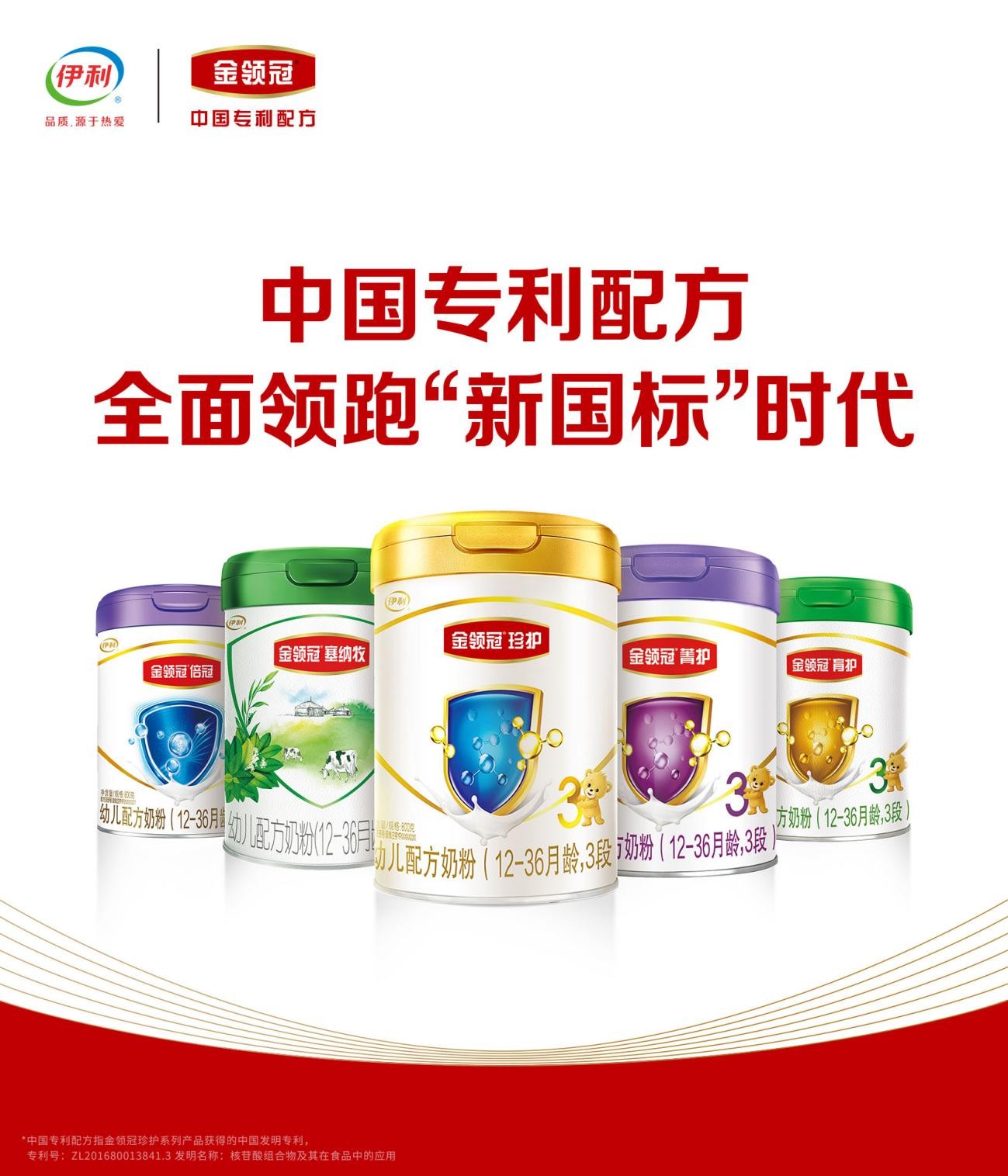 在配方创新领域,依托5大核心配方专利[1]、海外14项专利授权认证[2],金领冠创新应用中国专利配方[3],以更贴合中国宝宝所需的专业营养,助推婴配粉行业跨入“超级配方2.0时代”。背靠伊利集团全球创新网络,金领冠还与国内外众多权威机构开展研究合作,持续推动母乳研究“产学研用”融合发展,使具有创新性、突破性的研究成果实现落地应用。
