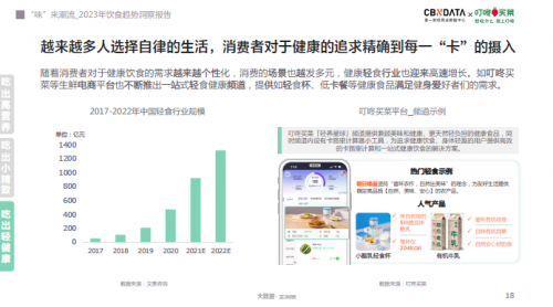 近日,第一财经商业数据中心(CBNData)联合叮咚买菜发布《“味”来潮流_2023年饮食趋势洞察报告》(以下简称《报告》),依托CBNData消费调研数据,揭示品质新“食”代下,消费者在饮食需求上的消费升级趋势,并对饮食消费的发展方向提出展望。